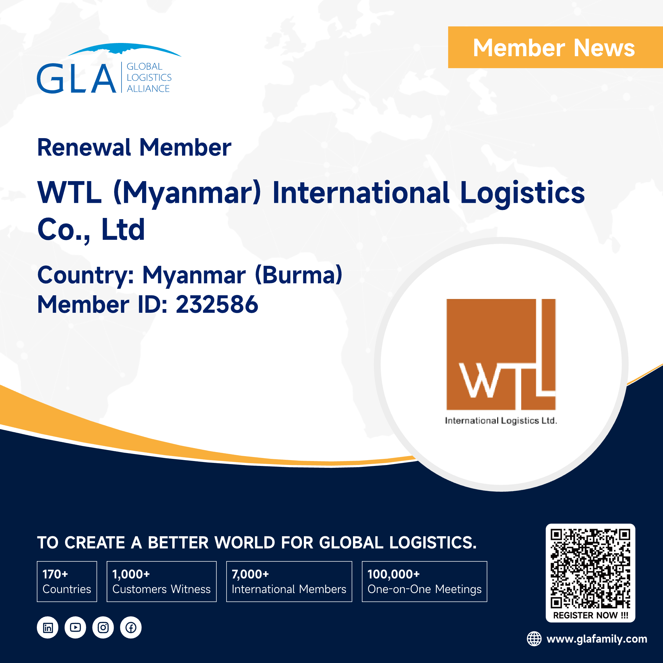 Welcome! GLA Golden Membership Renewal from Myanmar (Burma) ———— WTL (MYANMAR) INTERNATIONAL LOGISTICS CO., LTD
